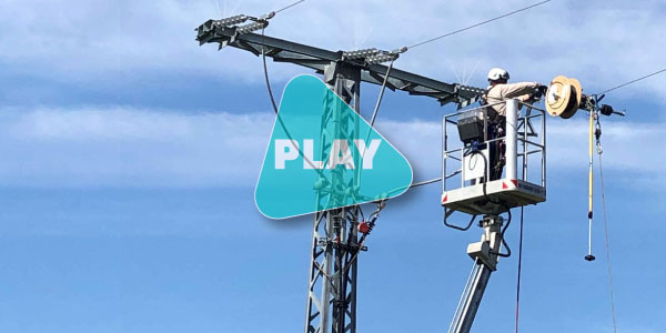 Die Anwendung des Verfahrens war im Juni 2020. Die Kabelrolle hing in 14 Meter Höhe zwischen den beiden Masten. Um den technischen Aufwand gering zu halten, wurde die Rolle über die Strecke von circa 50 Metern manuell – von einer Seite zur anderen – vom Boden aus gezogen. Auf längeren oder ansteigenden Strecken kommt dagegen ein motorisiertes Zuggerät zum Einsatz.